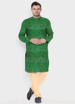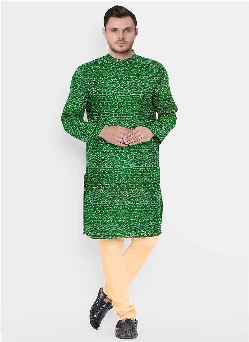 Teen Boys Green Bandhani Printed Rayon Kurta Set Festive Wear