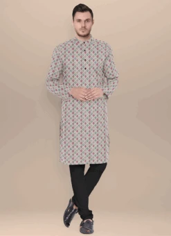 Teen Boys White Art Silk N Black Kurta Pyjama Set Festive Wear