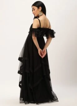 Teen Girls Black Embroidered Organza N Net Gown Party Wear