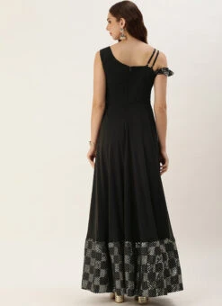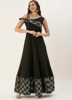 Teen Girls Black Georgette Embroidered Gown Party Wear