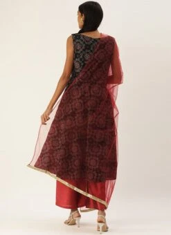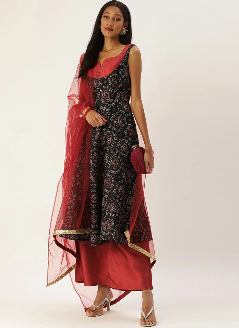 Teen Girls Black Printed Sweetheart Neck Anarkali Suit Festive Wear