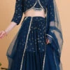 Teen Girls Blue Chinon Embroidered Green Net Lehenga Set Festive Wear