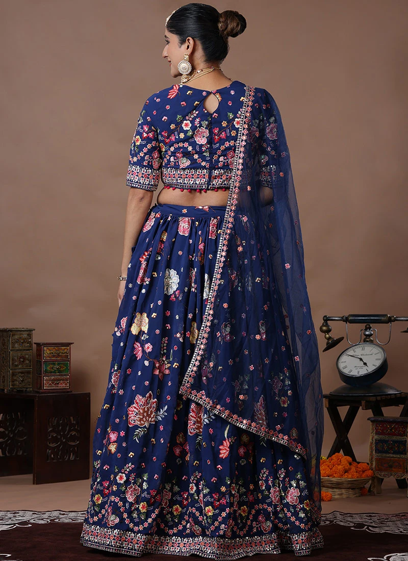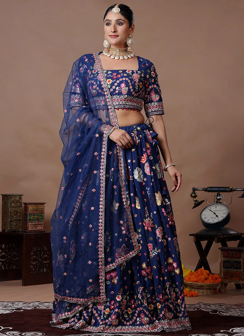 Teen Girls Blue Embroidered Gathered Style Lehenga Set Wedding Wear
