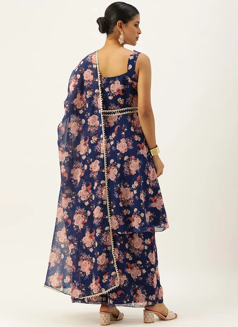 Teen Girls Blue Georgette Printed Palazzo Suit Festive Wear