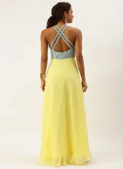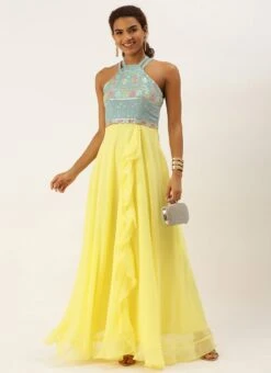 Teen Girls Blue Georgette Sequins Yellow Gown Party Wear