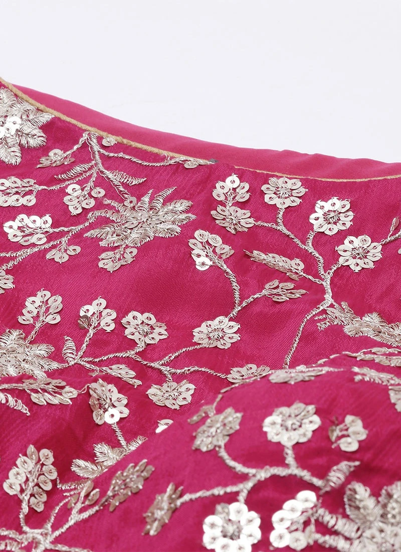 Teen Girls Blue N Pink Embroidered Anarkali Festive Wear