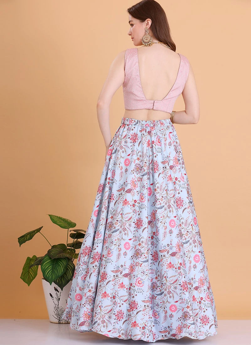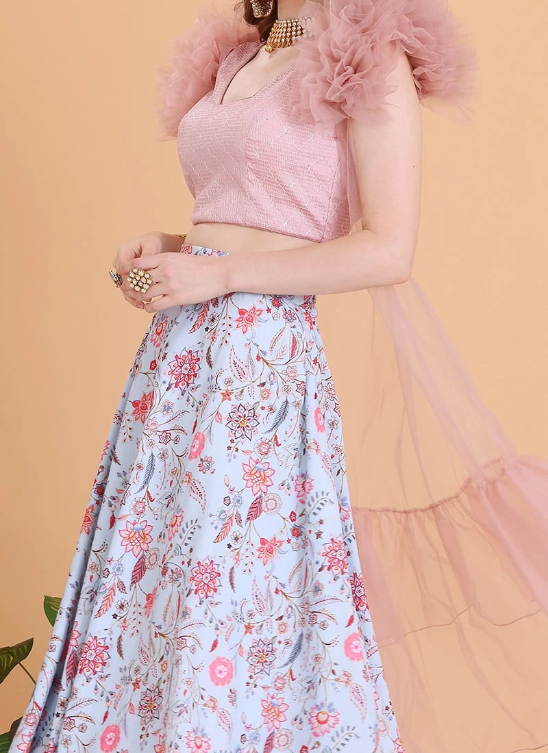 Teen Girls Blue N Pink Embroidered Lehenga With Jacket Festive Wear