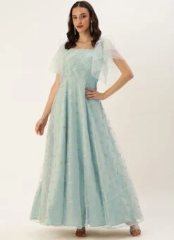 Teen Girls Blue Net Embroidered Gown Party Wear