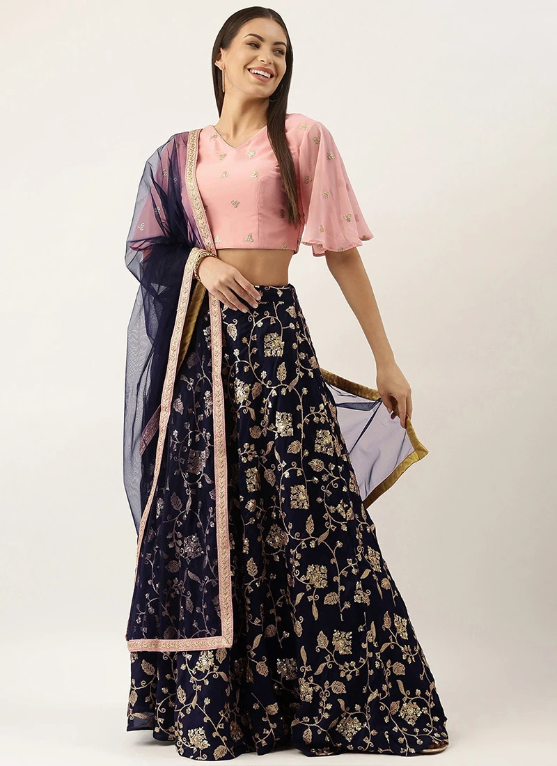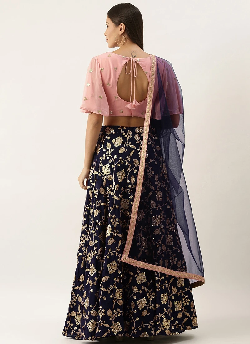 Teen Girls Blue Sequins Embroidered Lehenga Set Festive Wear