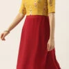 Teen Girls Burgundy Georgette N Yellow Printed Viscose Gown After Six Wear