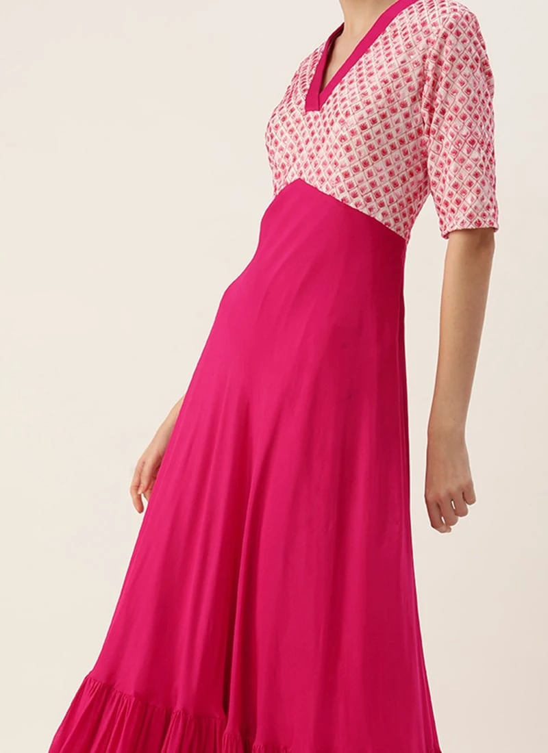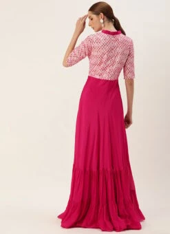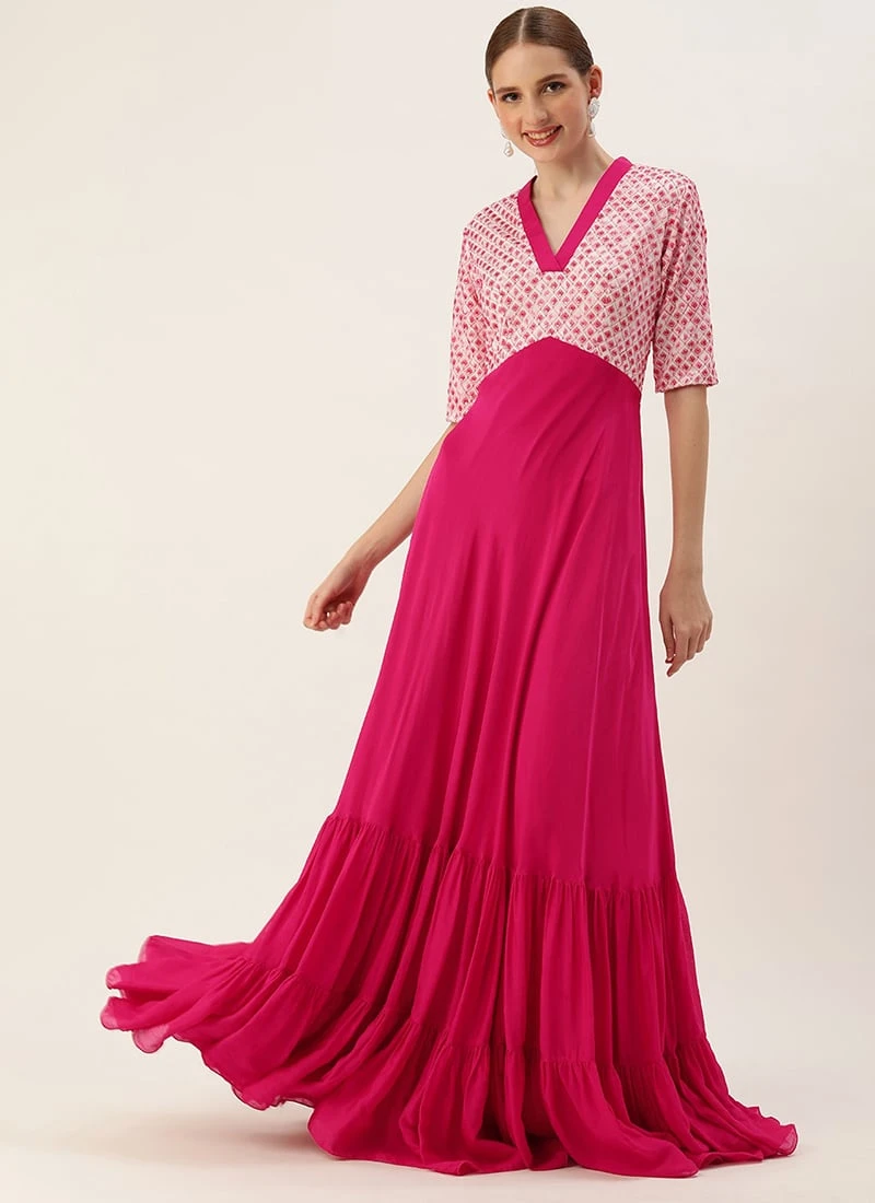 Teen Girls Cream Georgette Embroidered Gown Festive Wear