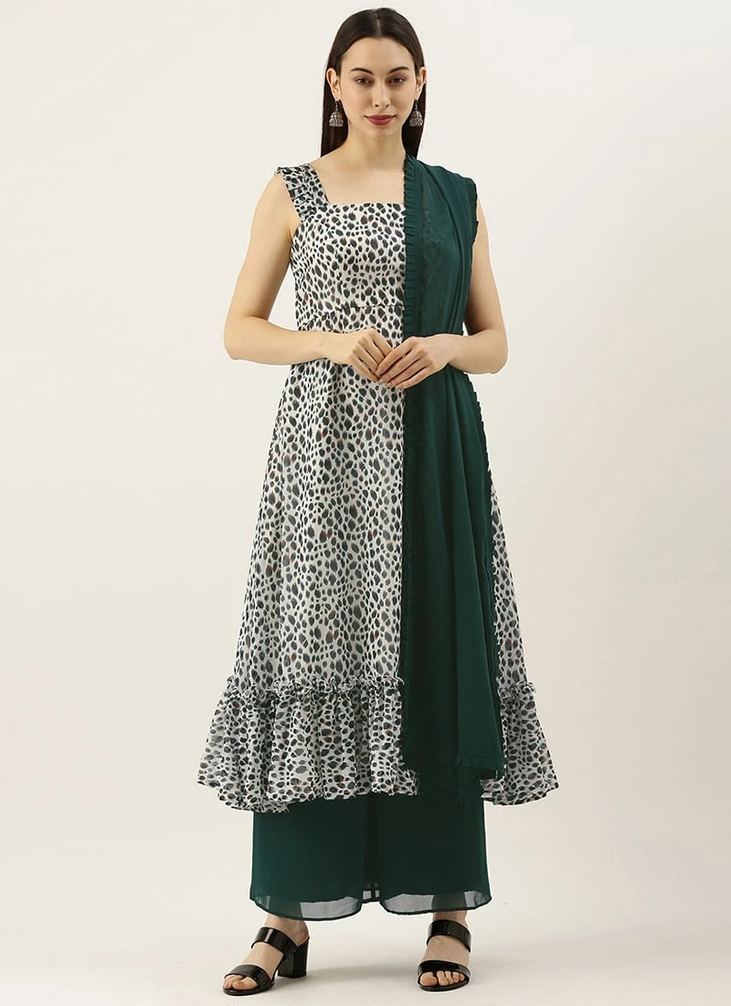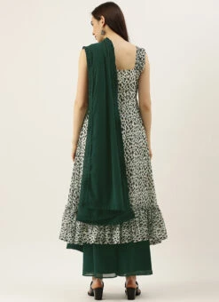 Teen Girls Cream N Green Strap Neck Palazzo Set Festive Wear