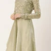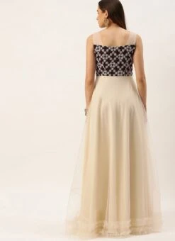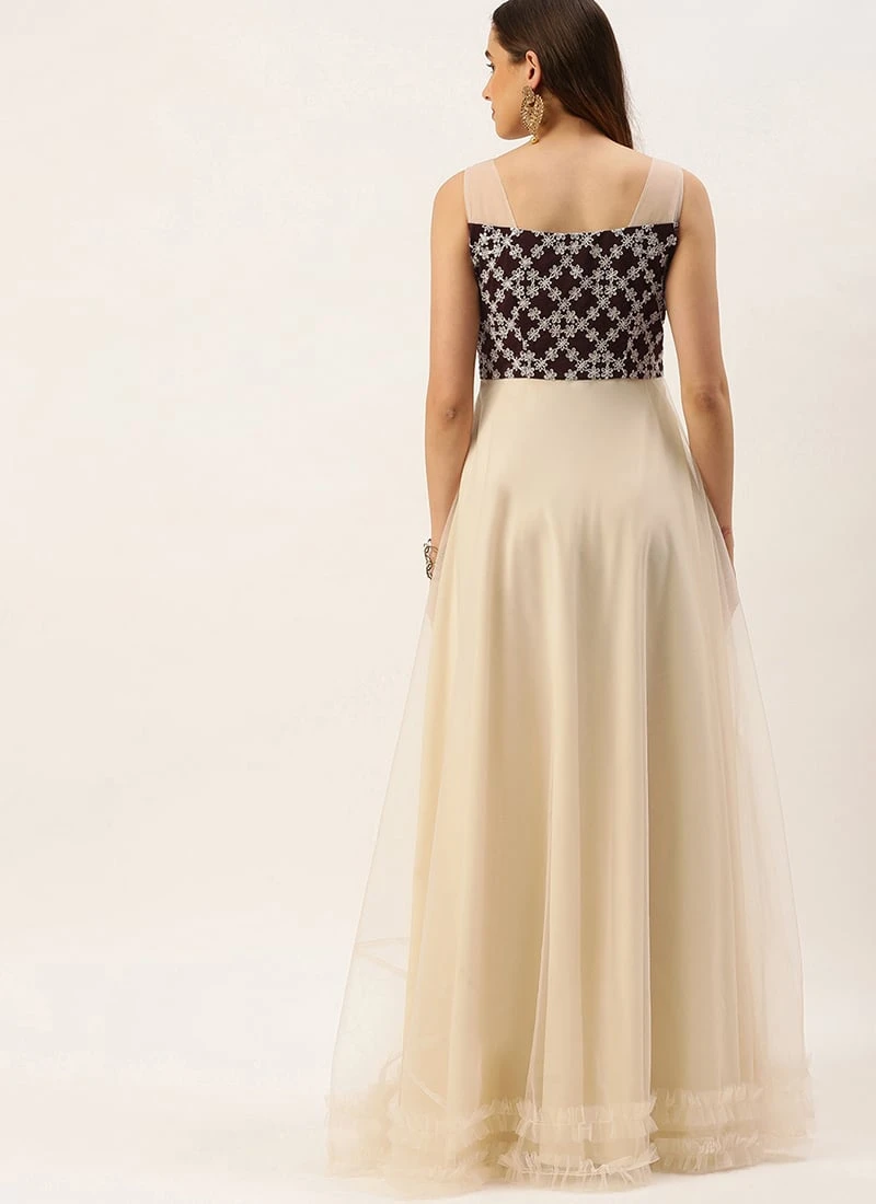 Teen Girls Cream N Wine Muslin Sequins Embroidered Gown Festive Wear