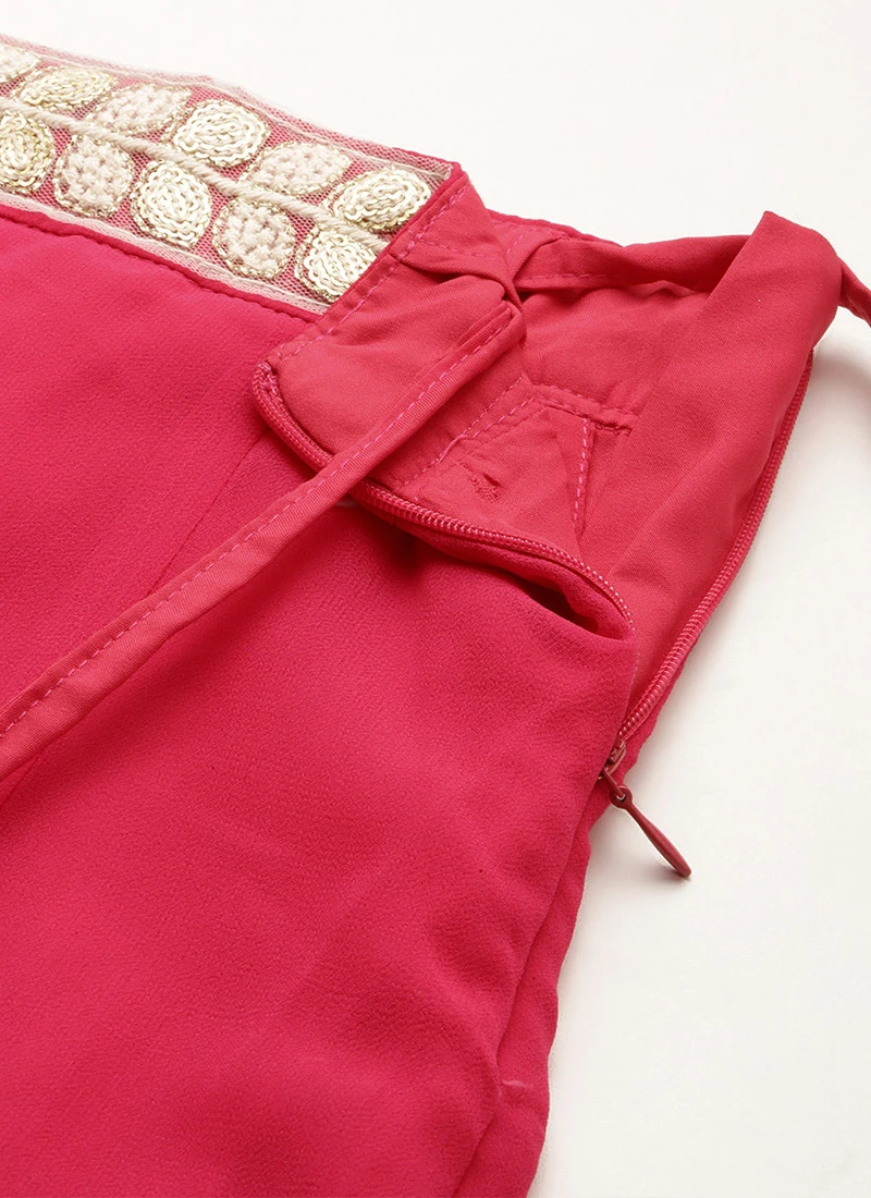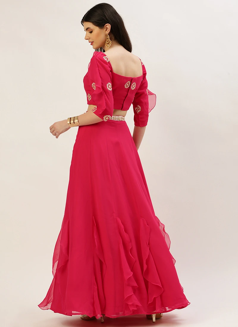 Teen Girls Dark Pink Embroidered Ruffles Style Skirt Set Wedding Wear