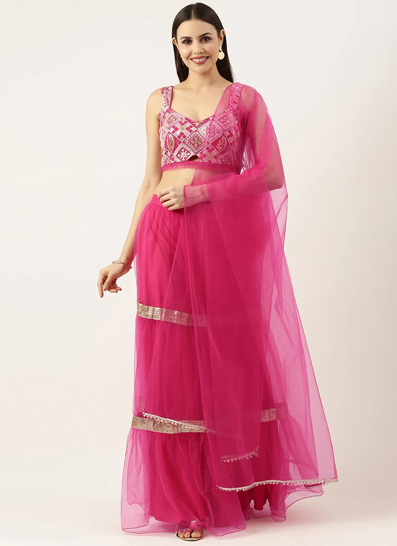 Teen Girls Dark Pink Georgette Embroidered Lehenga Festive Wear