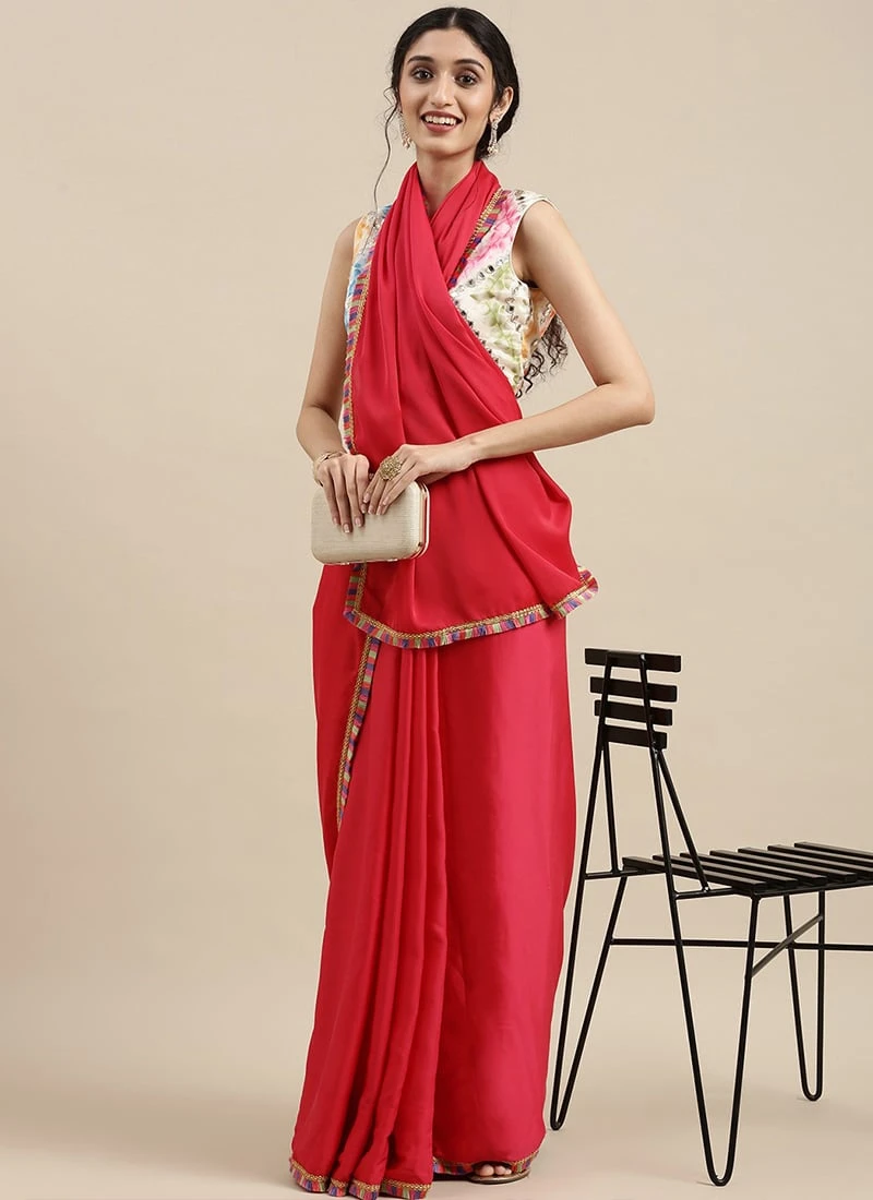 Teen Girls Dark Pink Saree N Embroidered Blouse Festive Wear