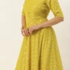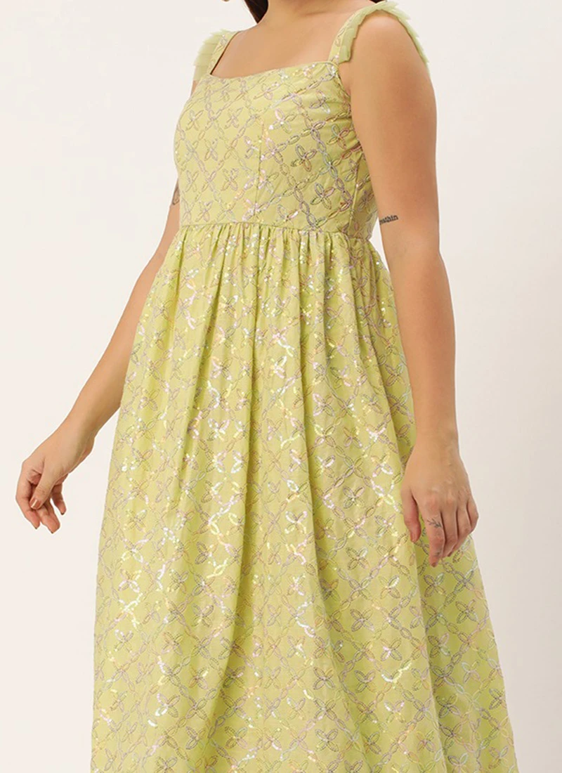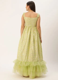 Teen Girls Green Cotton Sequins Embroidered Gown Festive Wear