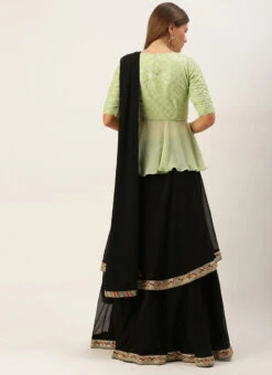 Teen Girls Green N Black Embroidered Layered Lehenga Set Festive Wear
