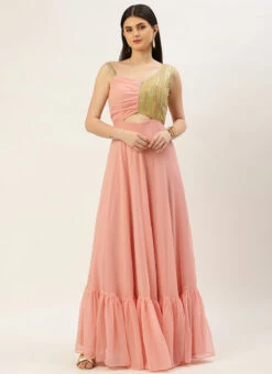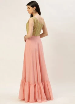 Teen Girls Green N Pink Sequence Embroidered Gown Festive Wear