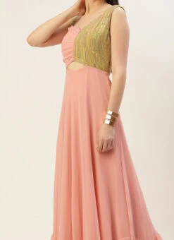 Teen Girls Green N Pink Sequence Embroidered Gown Festive Wear
