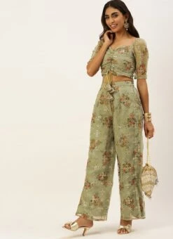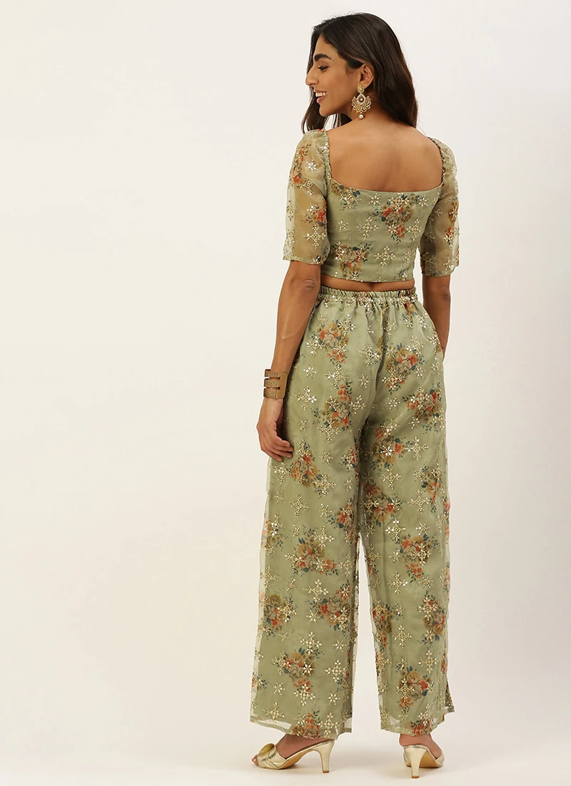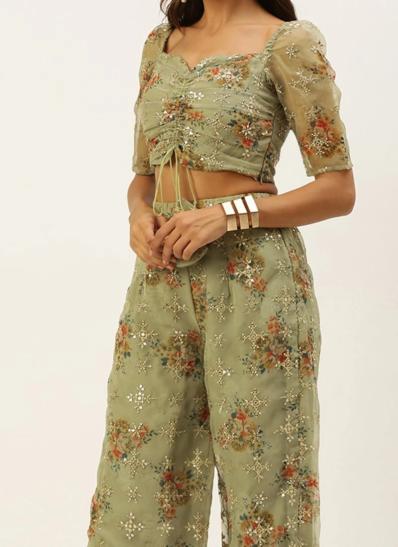 Teen Girls Green Organza Embroidered Co Ords Set Party Wear