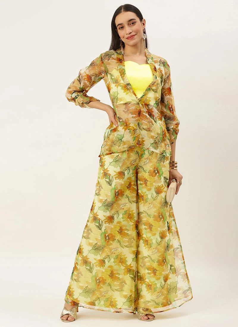 Teen Girls Green Organza Palazzo N Jacket Co Ords Set Festive Wear