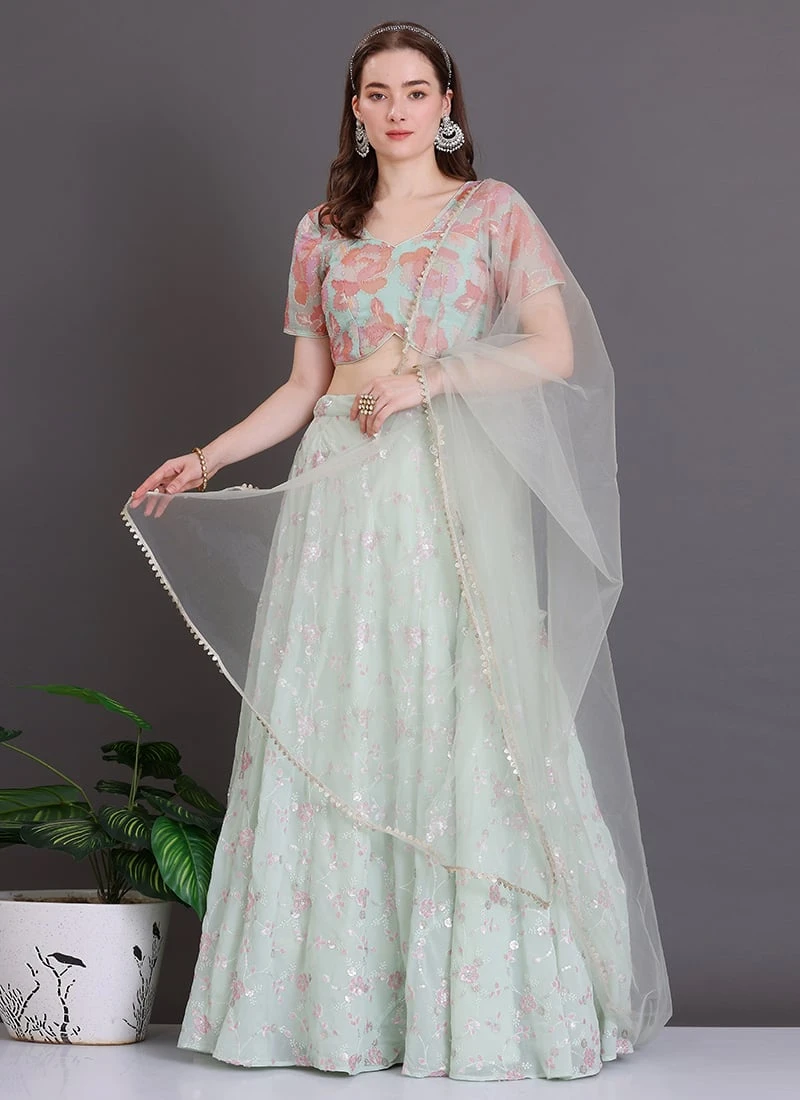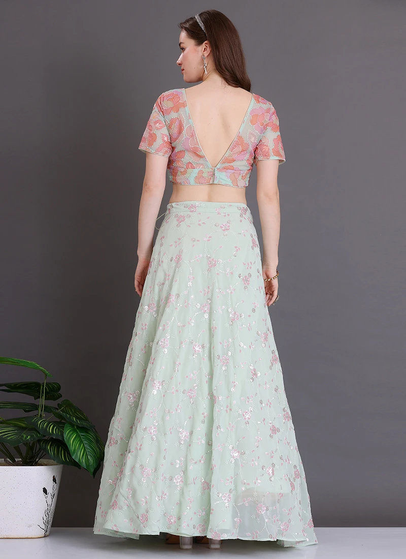 Teen Girls Green Sequins Georgette Lehenga Set Festive Wear