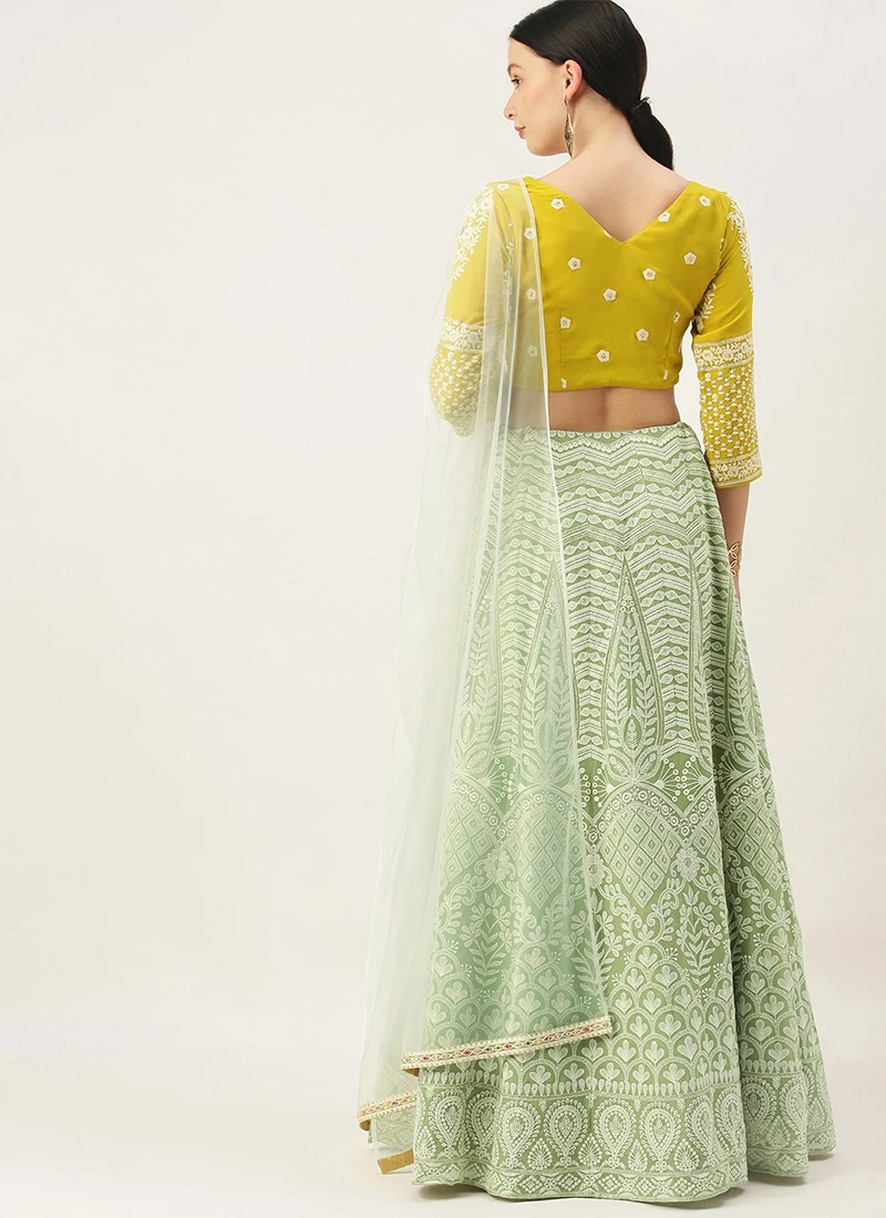 Teen Girls Green Viscose N Yellow Georgette Kali Lehenga