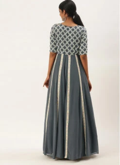 Teen Girls Grey Georgette Embroidered Kali Style G Festive Wear