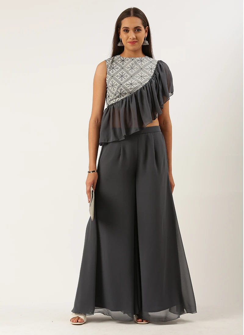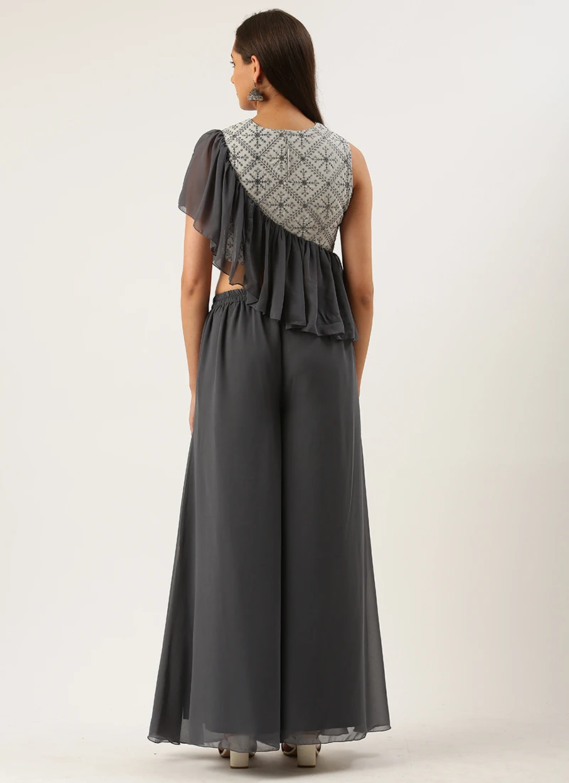 Teen Girls Grey Georgette Embroidered Palazzo Set Festive Wear