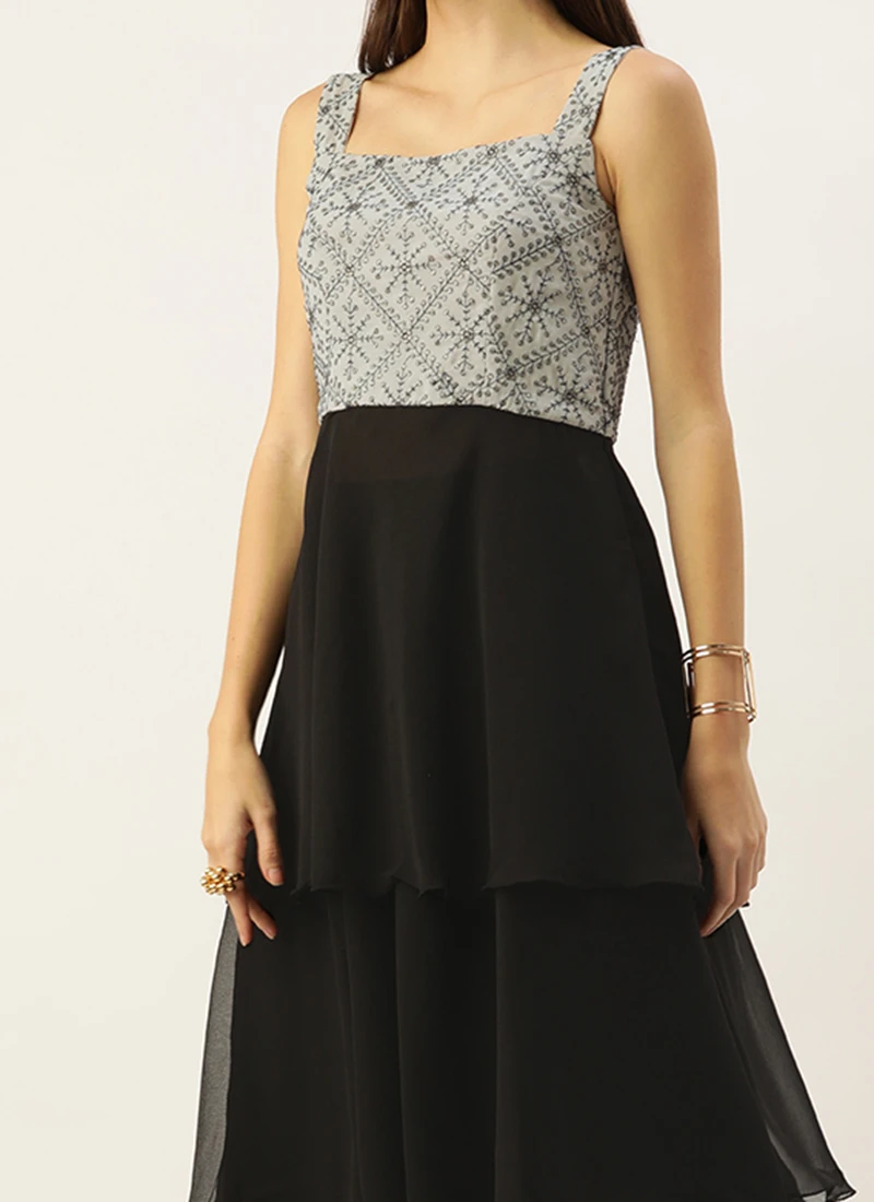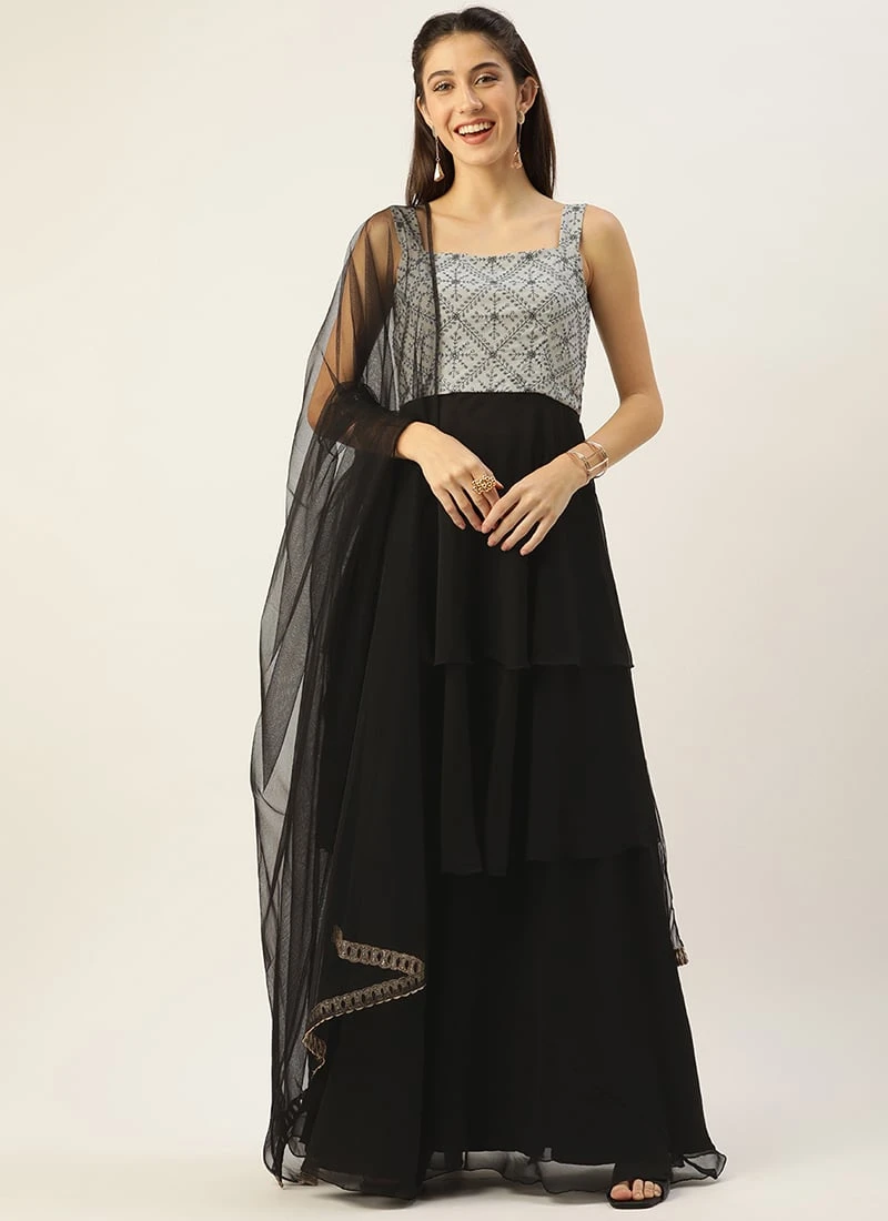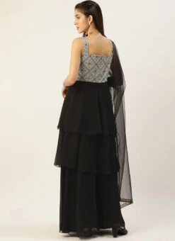 Teen Girls Grey N Black Layered Palazzo Suit Festive Wear