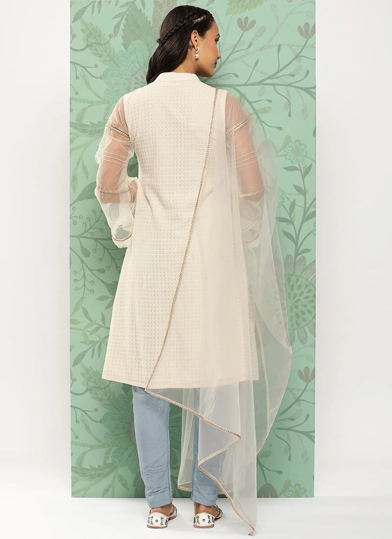 Teen Girls Grey N White Sequin Embroidered Straight Pant Suit Festive Wear