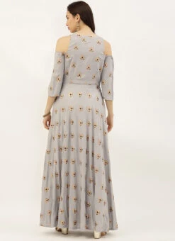Teen Girls Grey Rayon Cold Shoulder Style Dress After Six Wear