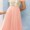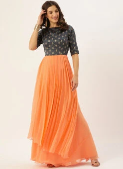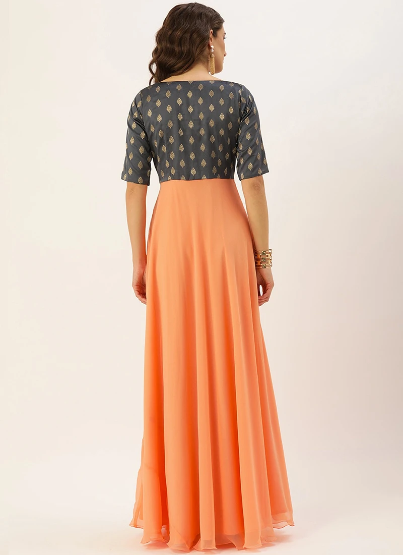 Teen Girls Grey Taffeta Jacquard N Peach Jacquard Gown Festive Wear