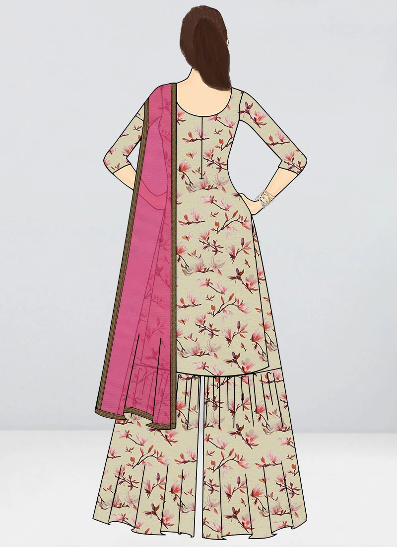 Teen Girls Light Beige Printed High Neck Gharara Suit Festive Wear