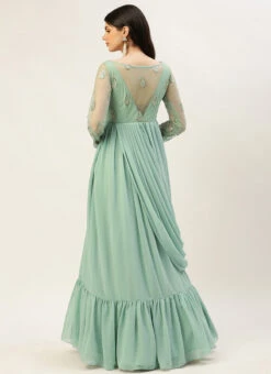 Teen Girls Light Blue Net Embroidered Georgette Gown Festive Wear