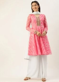 Teen Girls Light Pink Organza Palazzo Suit Festive Wear
