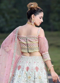 Teen Girls Light Pista Dupion Silk Embroidered Kali Lehenga Wedding Wear