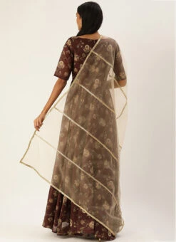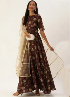 Teen Girls Maroon Chanderi Floor Length Anarkali Suit Festive Wear