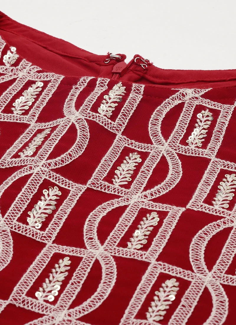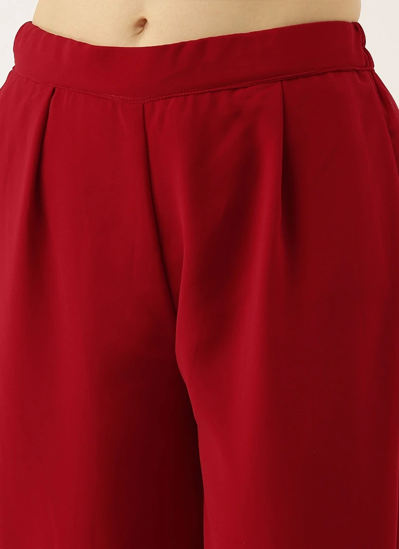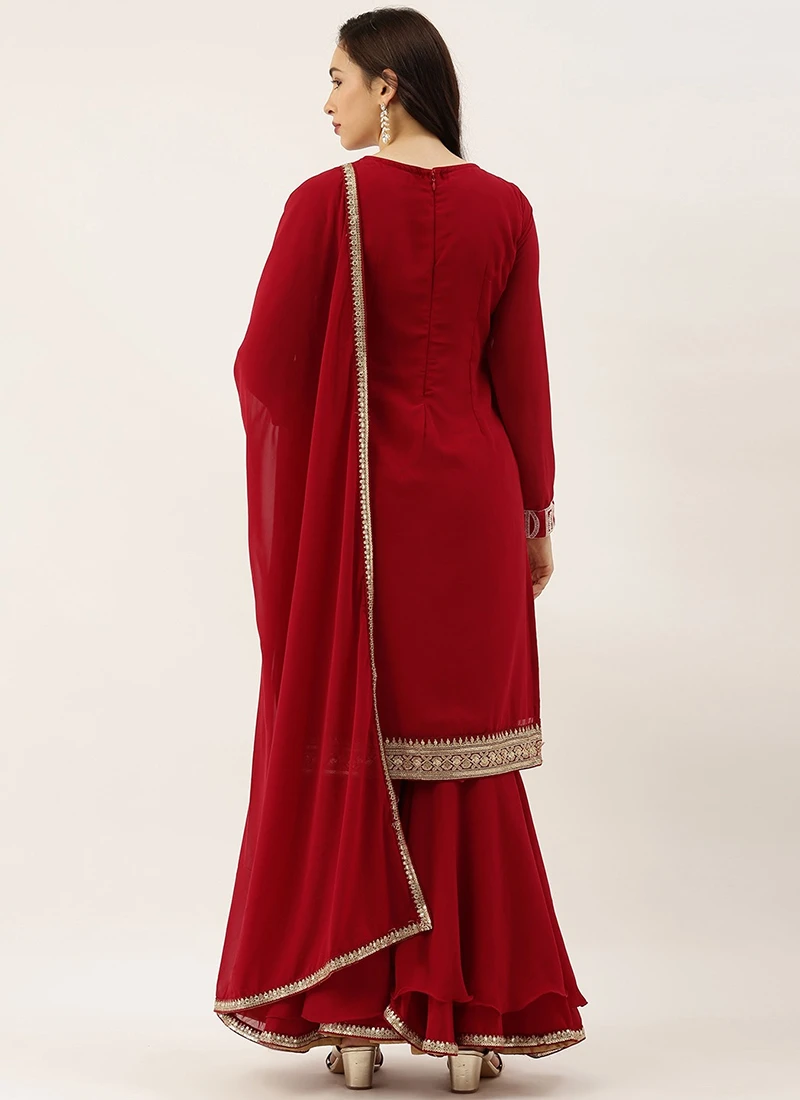 Teen Girls Maroon Embroidered Gharara Suit Festive Wear