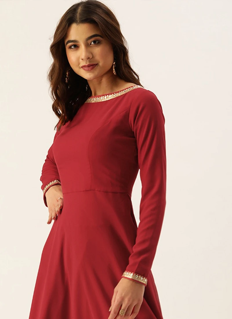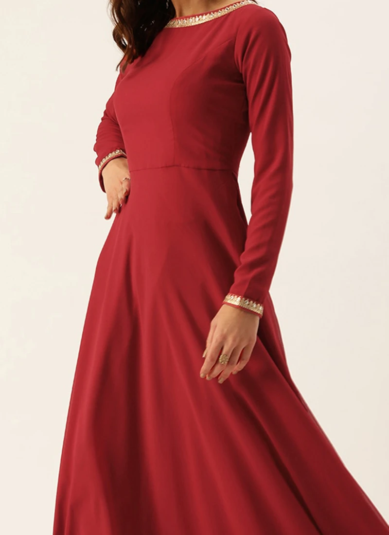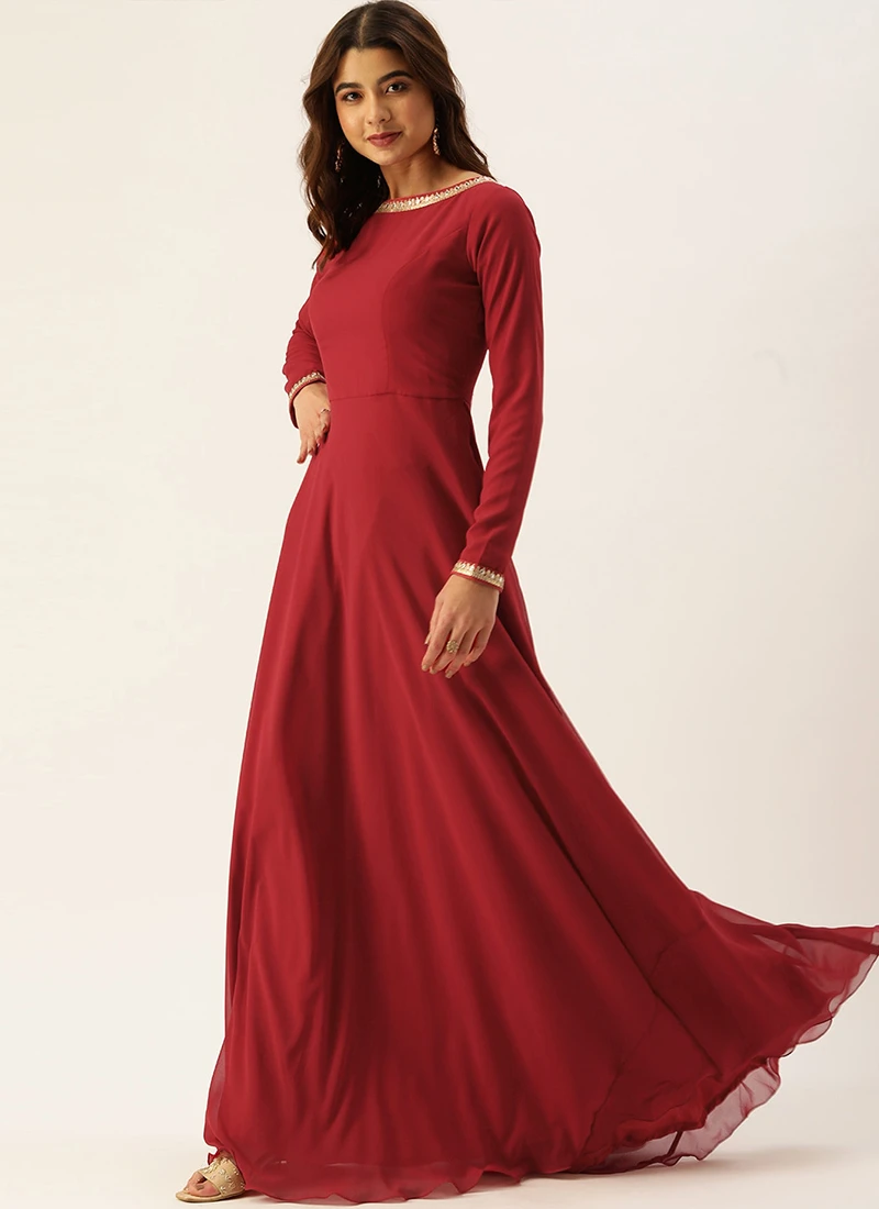 Teen Girls Maroon Floor Length Gown Festive Wear