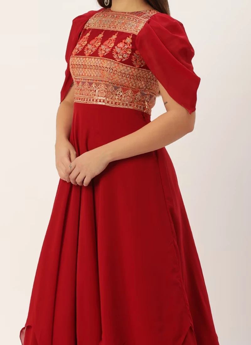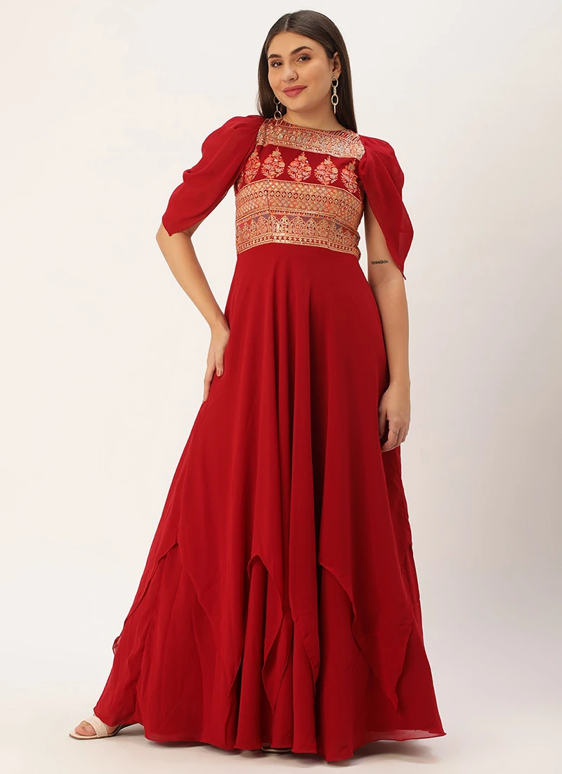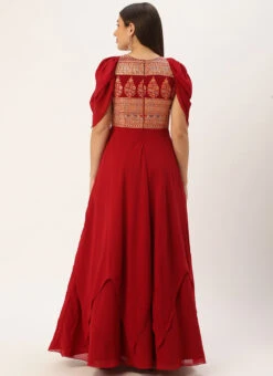 Teen Girls Maroon Georgette Embroidered Gown Party Wear