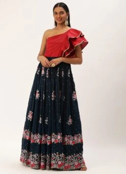 Teen Girls Maroon N Blue Sequins Georgette Gown Festive Wear