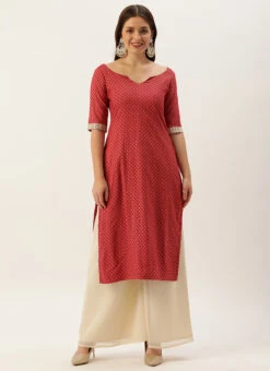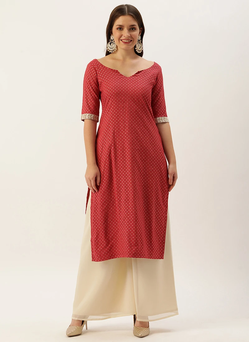 Teen Girls Maroon Nylon Jacquard Kurta Sets Festive Wear