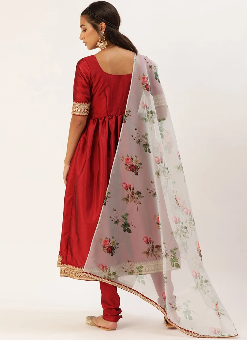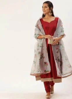 Teen Girls Marron N Grey Gathers Anarkali Suit Festive Wear