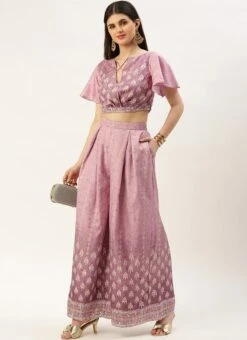 Teen Girls Mauve Art Silk Digital Printed Co Ords Set Party Wear