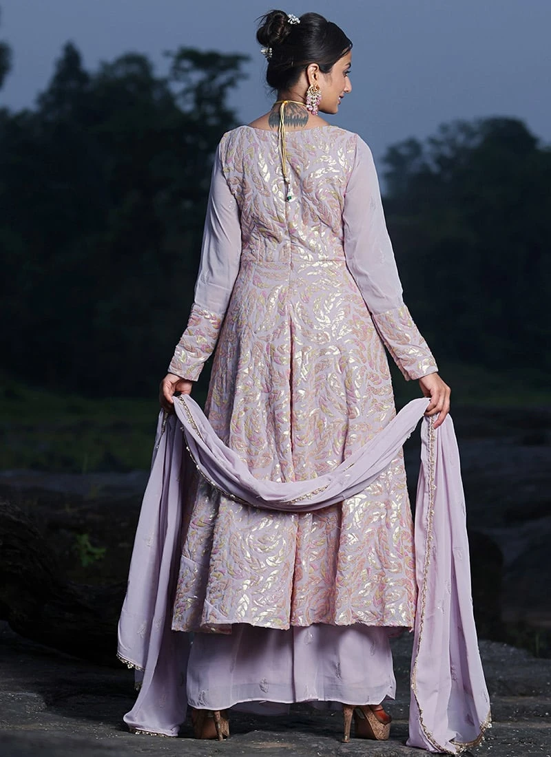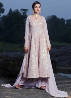 Teen Girls Mauve Embroidered Georgette Anarkali Suit Wedding Wear