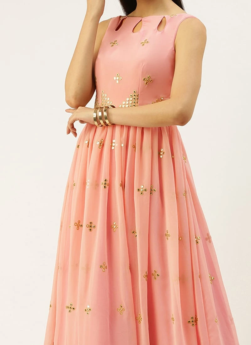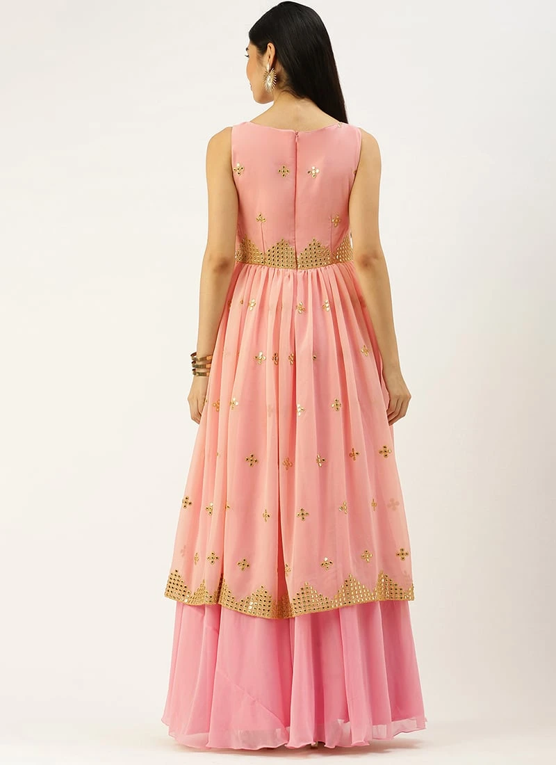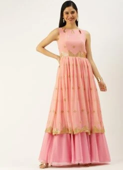 Teen Girls Mauve Georgette Embroidered Gown Festive Wear