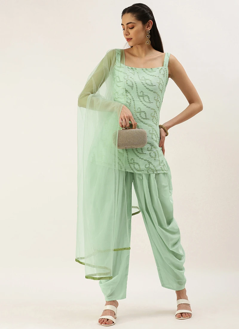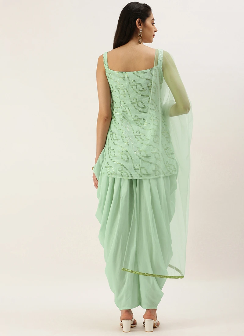 Teen Girls Mint Green Georgette Embroidered Dhoti Suit Festive Wear
