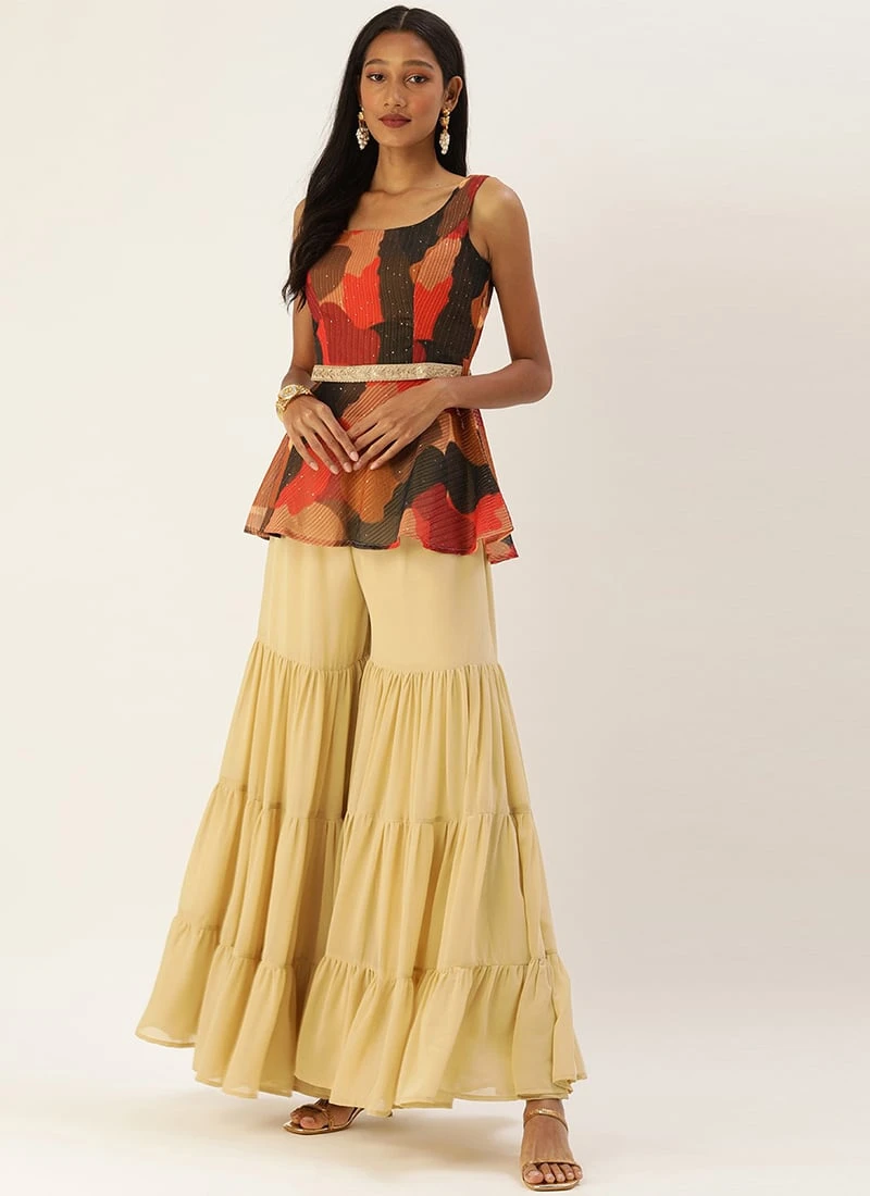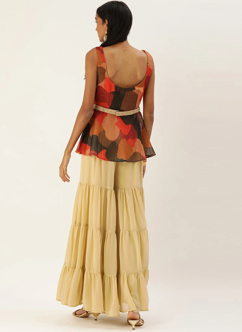 Teen Girls Multicolored Embroidered Peplum Top N Palazzo Set Festive Wear